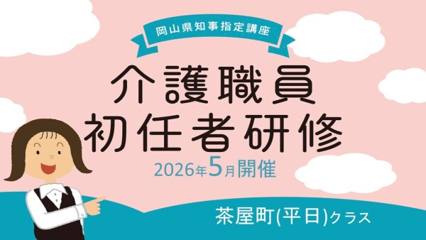 【介護職員初任者研修】4ヶ月で介護の資格が取れる!受講満足度95%!2026年5月生(木曜日クラス(倉敷:茶屋町教室))受講生募集!