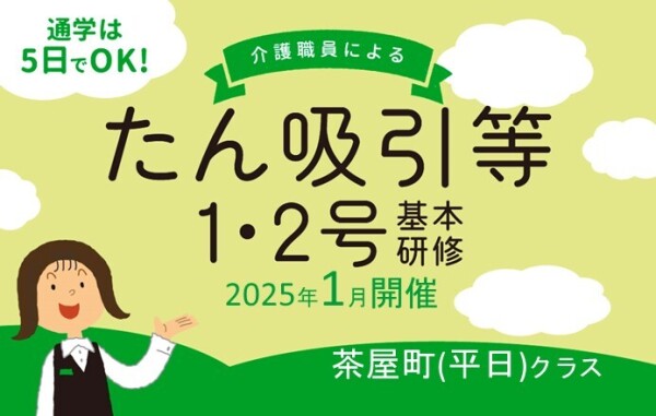 【たん吸引等(1・2号)基本研修】特定一般教育訓練対象講座!通学は5日間でOK!2025年1月生 (倉敷:茶屋町教室) 受講生募集