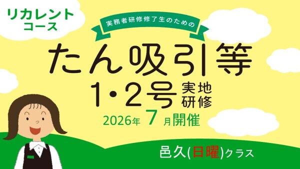 たん吸引等(1・2号)研修 リカレントコース|実地研修までサポート!2026年8月開講!(東備:邑久教室)