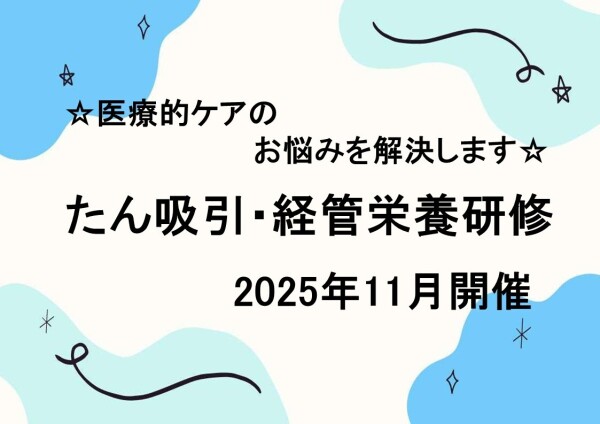 【たん吸引・経管栄養研修】2025年11月開催!(倉敷:茶屋町教室) どなたでも受講OK!1日のみの参加もOK!申込受付中!