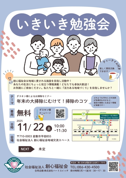 【いきいき勉強会】ダスキン様によるお掃除セミナー~年末の大掃除に向けて~2025年11月開催!☆参加無料☆