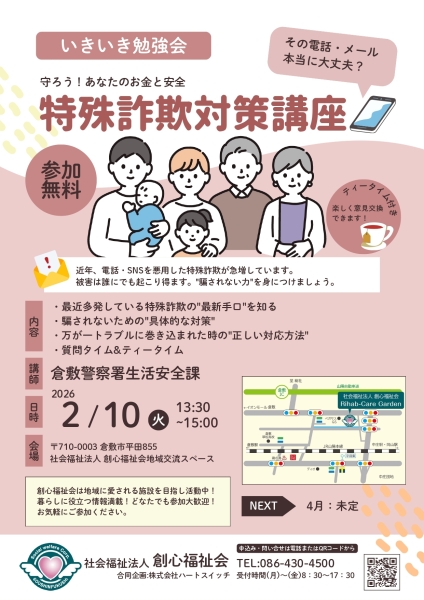 【いきいき勉強会】特殊詐欺対策講座~2026年2月開催!☆参加無料☆