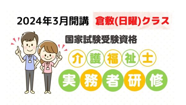 【介護福祉士実務者研修】日曜通学(月2~3回)で通いやすい!2024年3月開講クラス(倉敷:茶屋町教室) 受講生募集中!