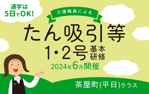 【たん吸引等(1・2号)基本研修】特定一般教育訓練対象講座!通学は5日間でOK!2024年6月生 (倉敷:茶屋町教室) 受講生募集