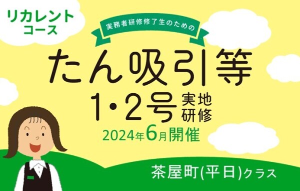 【たん吸引等(1・2号)実地研修】 実地研修に進めず悩んでいる方へ!実務者研修修了生のためのリカレントコース!2024年6月開講!(倉敷:茶屋町教室)